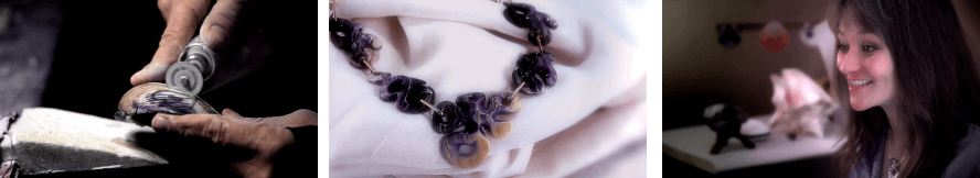 We intentionally delayed the shooting of the shells and other jewelry to a more convenient place and time to allow for more controlled lighting and camera work. Turntable rotation and light tents contributed to a high-end professional presentation of the end product that elevated Marcia’s product.